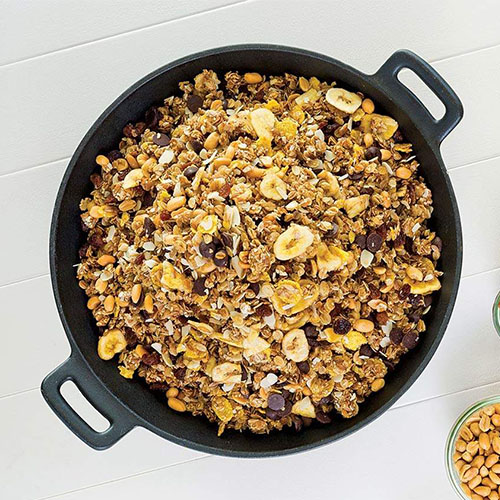 Μαύρη σοκολάτα, μπανάνα, ξανθιά σταφίδα, peanuts και φιλέ φιστίκι.